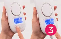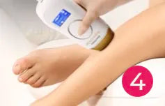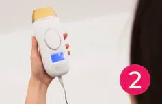 - Sobald das Blitzfenster vollständig mit Ihrer Haut in Kontakt ist, blinkt das LCD-Display. Drücken Sie dann die Blitztaste, und das Gerät gibt einen Lichtimpuls ab.
