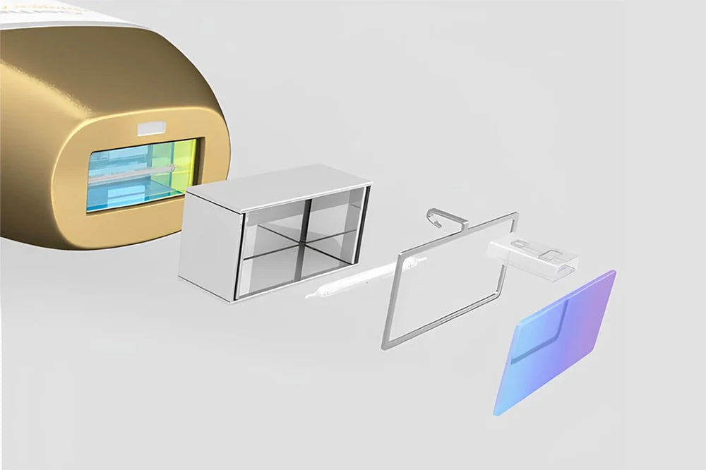 Das IPL-Haarentfernungssystem basiert auf dem Prinzip der thermischen Schädigung. Licht mit Wellenlängen von 520 bis 1200 Nanometern, das auf die Haut abgegeben wird, wird vom im Haar enthaltenen Melaninpigment absorbiert.