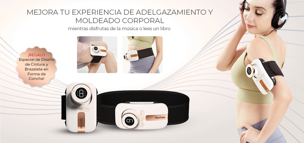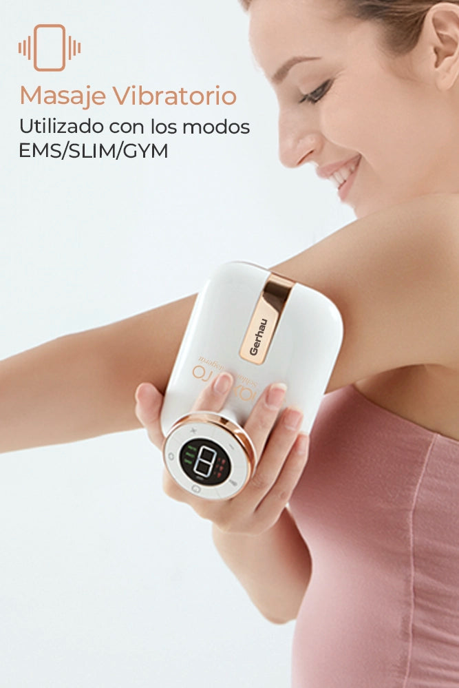 Gymax Pro combina tecnologías de frecuencia media y Estimulación Muscular Eléctrica (EMS) para trabajar los músculos de manera efectiva. Ofrece múltiples beneficios al usuario con diversos modos como Modo GYM, Modo Adelgazante y Masaje Vibratorio. La función de terapia con luz roja asegura que la piel se mantenga elástica y radiante. Gymax Pro te brinda métodos de ejercicio pasivo para moldear tu cuerpo, similares a los ejercicios activos realizados en el gimnasio.