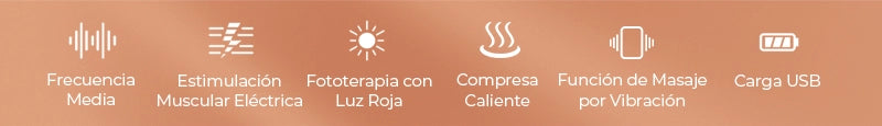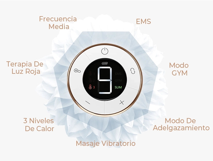 El producto cuenta con 3 niveles de calentamiento (nivel 1, nivel 2, nivel 3). El rango de temperatura es aproximadamente de 42 a 52°C. La aplicación de calor generalmente produce efectos como la dilatación de los vasos sanguíneos, mejora la circulación sanguínea y acelera el metabolismo, proporcionando beneficios específicos al cuerpo. Puede usarse junto con los modos EMS, SLIM y GYM.