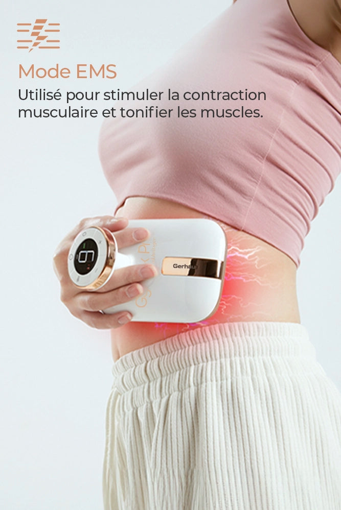 Le Gerhau Gymax Pro utilise une technologie spéciale de microcourants et de fréquences basses (2~60 Hertz) et moyennes (1000 Hertz) pour stimuler les muscles, augmentant ainsi le développement musculaire et la force. Il raffermit la peau, tonifie les zones relâchées, accélère le métabolisme, brûle efficacement les graisses et prévient leur formation. Gymax Pro est particulièrement efficace contre la cellulite et les vergetures. Grâce à sa lumière LED rouge (photothérapie), il améliore la texture de la peau, la nourrit et lui donne un aspect lisse, éclatant et lumineux. L'appareil dilate les vaisseaux sanguins par effet thermique, ce qui accélère la circulation sanguine. Le Gerhau Gymax Pro, appareil de Home Gym, retarde les effets du vieillissement et permet de conserver un corps ferme et tonique. Les effets de Gymax Pro sont naturels et durables.