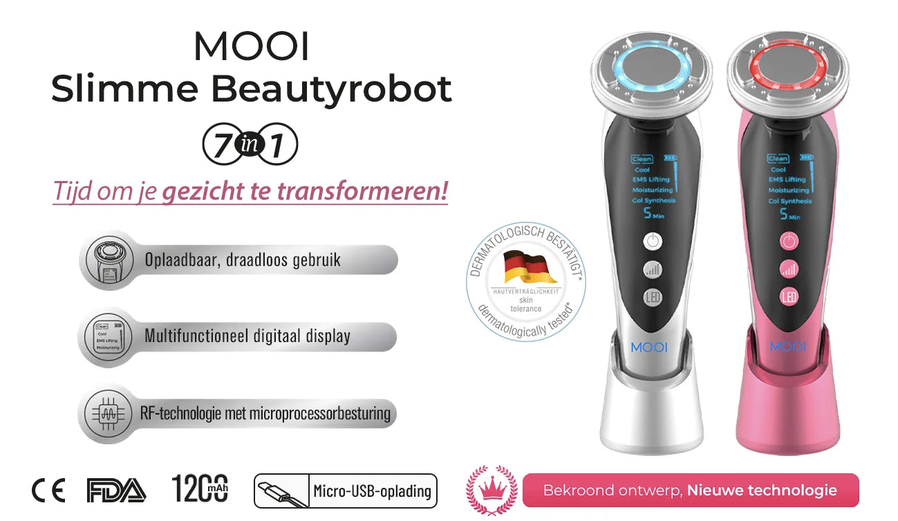 MOOI heeft een strak en ergonomisch ontwerp, waardoor het eenvoudig in je huidverzorgingsroutine te integreren is. Met zijn intuïtieve bediening en gebruiksvriendelijke interface is MOOI geschikt voor iedereen.